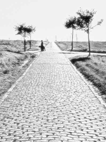 Belle idée, mais image en effet très pâle. Cela dit, les pylones ne sont pas gênants, ils indiquent où conduit ce chemin si rectiligne.