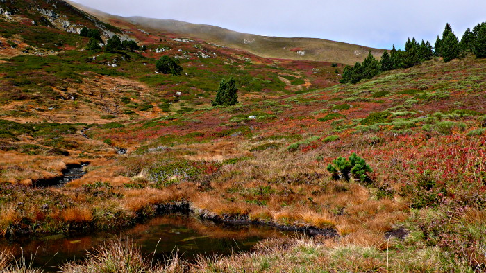Salut pampou: Quelques remarques : ce qui est coupé la montagne en haut à gauche et le petit étang au premier plan se voient beaucoup. les couleurs un peu surnaturelles sont en opposition avec la quiétude de la compo... à part ça j'aime bien...