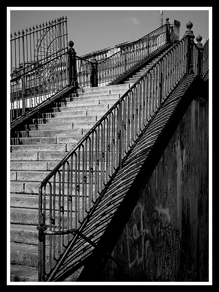 J'aime beaucoup ce traitement. Jeux d'ombres avec les rambardes, belle diagonale, j'aime beaucoup. Un seul regret pour moi, le poteau.
