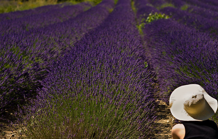 Bon cadrage et belle perspective formée par la lavande.