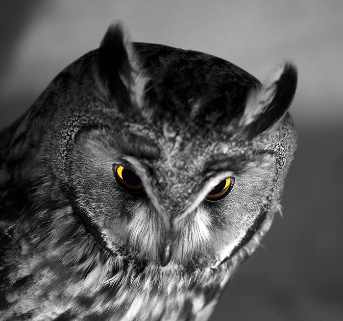 Très jolie photo, N&B impeccable, dommage que les oreilles de la chouette ou le hibou (je n'y connais pas grand grand chose en volatile) soient floues.