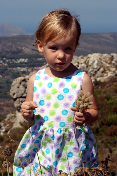 j'aime beaucoup la lumière sur ses cheveux. Elle est aussi un peu trop centrée à mon goût, et l'ombre sur le visage gène un peu, mais sinon c'est plutôt réussi ! la robe me paraît aussi un peu trop lumineuse. Sinon le cadre et l'attitude sont très bien saisis.