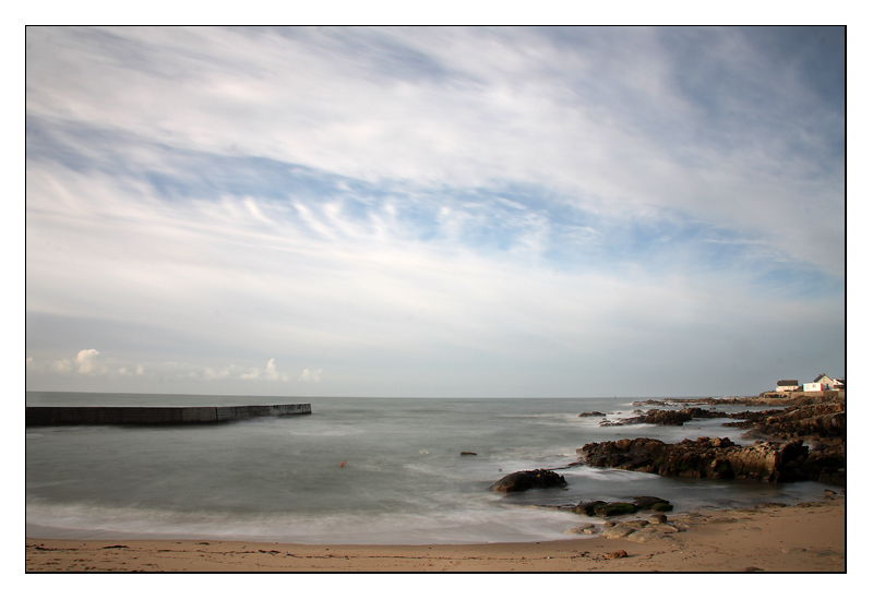 bizarrement la digue ne me gêne,ça aurait fait un peu "nu" ce côté.c'est vrai aussi que la lumière est belle sur la droite.la mer sort bien comme si la photo était prise en vitesse lente sur un pied.bien vu.