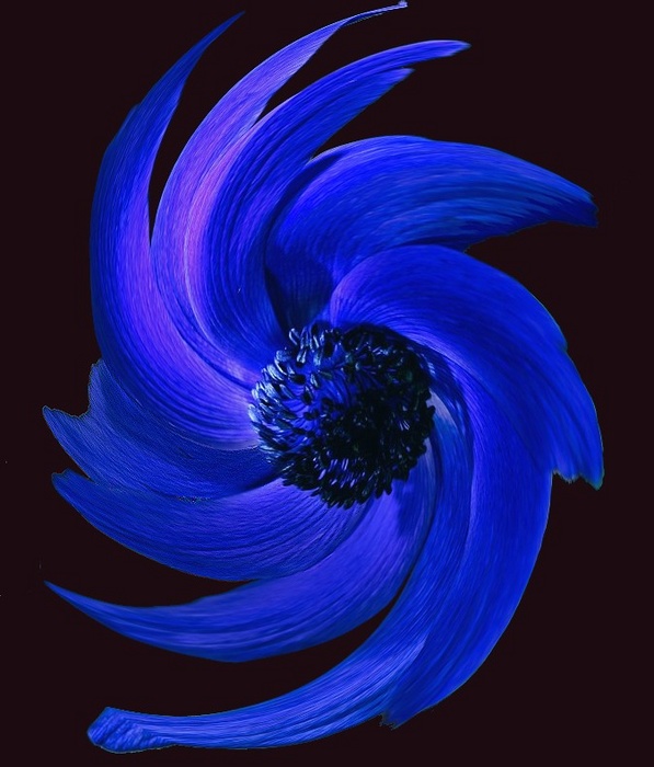 Effet intéressant je trouve. Je préfère le haut de la photo avec les reflets mauves sur le bleu de la fleur. Quelques traces probablement dues au détourage non? Bien vue cette fleur transformée en "galaxie".