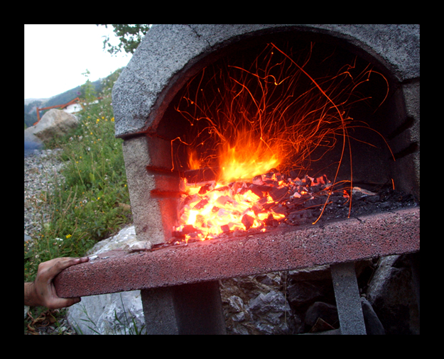 j'aime bien le crépitement du feu qui me donne envi de faire de bonne grillade ! ! Mais ça penche vraiment trop ! ! comme ça peut etre !