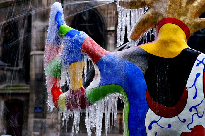 Dommage de ne pas avoir cadré la sculpture en entier, la coupure juste en-dessus du jet d'eau me gêne un peu. Sinon, belle photo !
