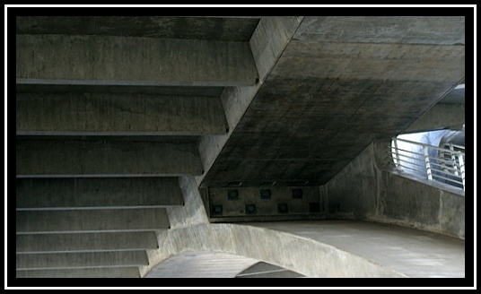 J'aime bien la première. J'ai essayé un cadrage en laissant partir la courbe du coin inférieur droit de la photo. N'étant pas convaincu que cela est meilleur, je te laisse le soin d'essayer pour voir! Sinon très bien vu ces courbes et lignes droites.