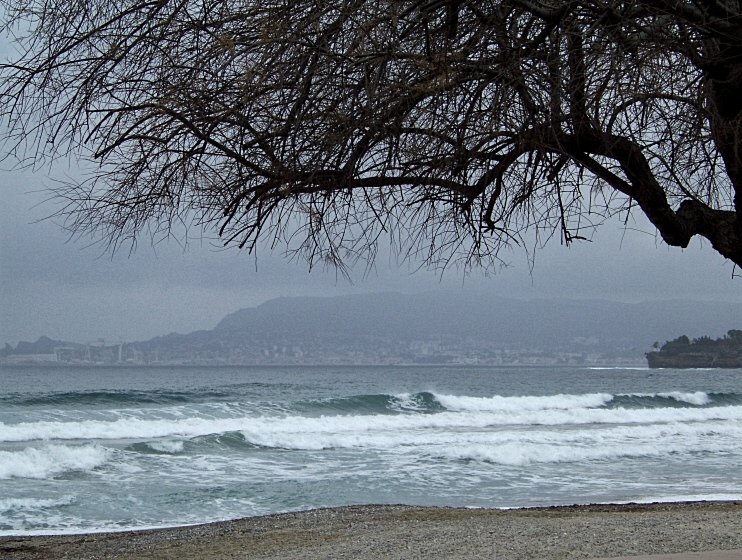 Ave la Ciotat et les ex chantiers navals en fond. l'idée de mettre une branche en haut crée un cadre naturel. Par contre la photo manque de contraste et de couleurs... et la brume limite la visibilité...