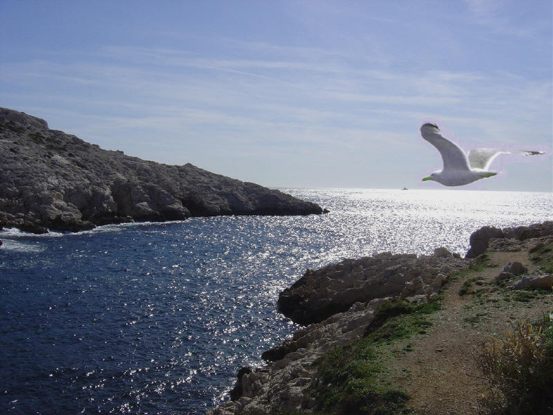 Il me semble aussi qu'il y a un problème au niveau de la mouette : elle a le bec et les pattes vertes, et un halo violet tout autour.