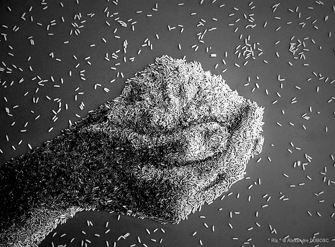 Photo réalisé avec des grain de riz teinté dans différents dégradés de gris puis disposé sur un papier en fonction d'une photo préalable !