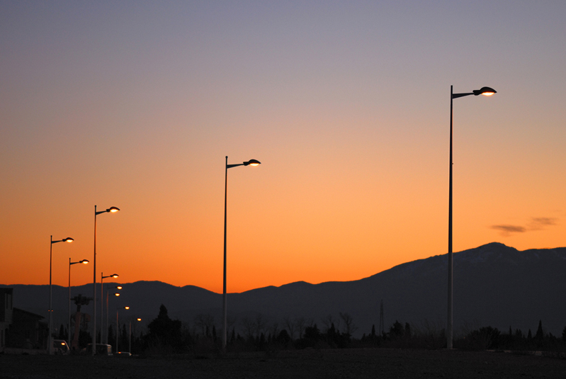 J'aime également le cadrage, avec cette ligne de lampadaires. De plus il nous offre un contraste fort entre la "verticalité" des poteaux et "l'horizontalité" de la montagne derrière.