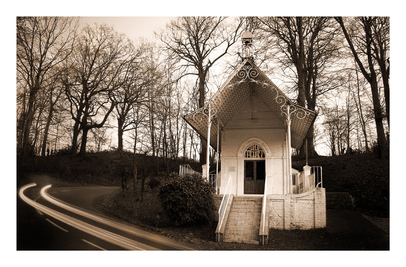 Belle image, le filé de phares de la voiture apportent un + à la compo. J'aurais peut être aimé voir un peu plus d'espace devant la chapelle (mais je ne suis pas un spécialiste! )