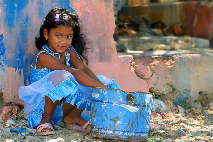 Une adorable petite artiste peintre . Tout est doux , et beau . Une jolie composition , un très bel instant enfantin .