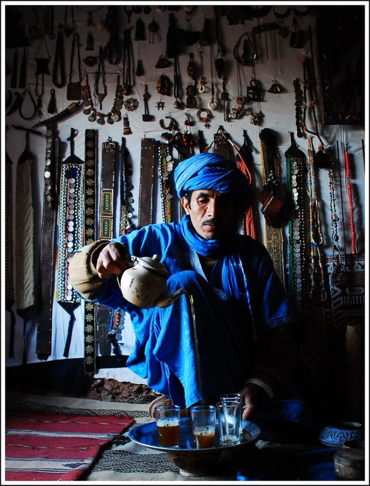 Ah! la cérémonie du thé.. Moment délicieux avant de "négocier".. Une belle photo, j'aime le côté lumière et le côté ombre..