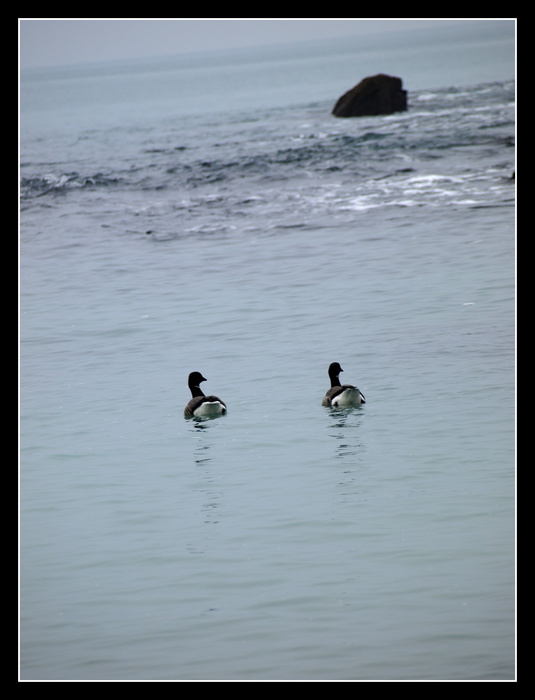 Vu qu'ils regardent dans la même direction, ça aurait pu eventuellement le faire en format horizontal, avec du champ à leur regard et en positionnant les éléments (canards & rocher) sur des points forts...