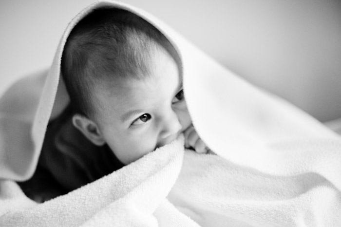 Jolie petite Myla aux grands yeux observateurs, et qui soulage ses gencives titillées par ses petites dents qui poussent..