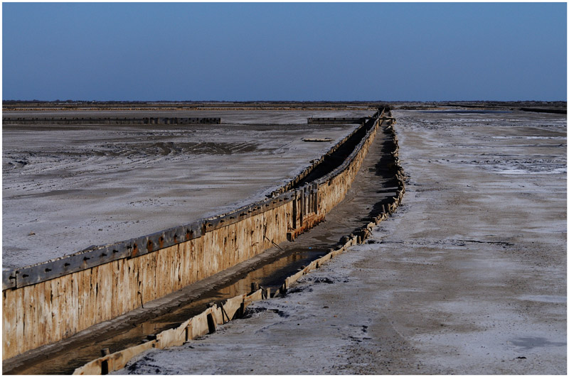 Une ligne de fuite qui part de l'angle et qui avec subtilité s'arrondit au milieu de la photo pour repartir droite et se perdre tout en laissant place à l'horizon lointain du ciel .