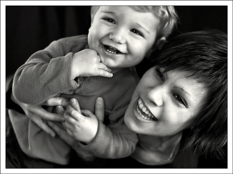 Profondeur de champ un poil trop courte, du coup la main du petit et le visage de la femme sont bien nets, mais pas celui du bambin.