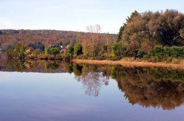 Cette eau est un vrai miroir, c'est où? Les couleurs automnales sont très belles sur la colline au fond.