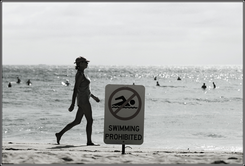 Avec du recul je me rend compte que l'objectif est peut être de montrer des baigneurs derrière le panneau "baignade interdite".