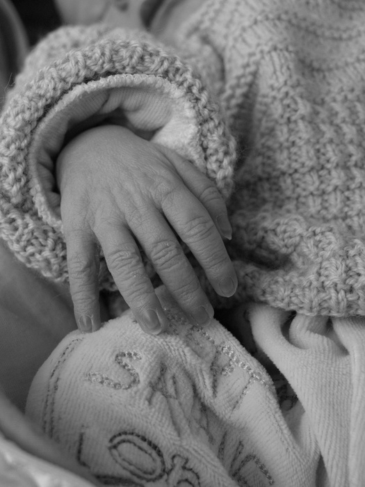 c'est un peu grisouille (retoucher l'histogramme), et le fait que cette petite main soit toute ridée fait un peu bizarre - c'est volontaire?
