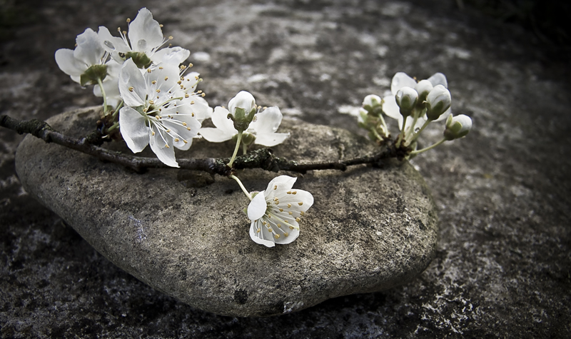 J'aime l'opposition de la douceur des pétales avec la dureté et les aspérités de la roche.