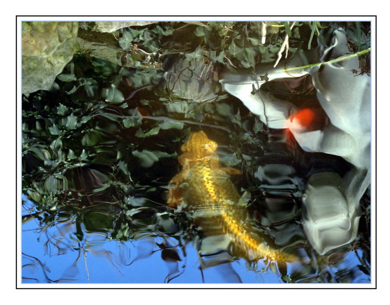 Explication, Juste pour le sujet, pris sur le vif une grenouille sur le dos de la carpe dans le jardin, pas de filtre antireflet, juste une curiosité de la nature, c’est le printemps