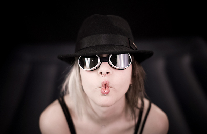 Belle réalisation : c'est un peu le foutoir dans les reflets des lunettes et il y a un brettelle de trop.