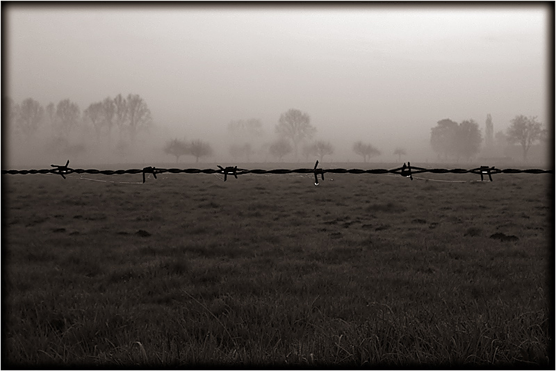 j'aime beaucoup ce ciel! mais j'aurais peut être recadré en faisant apparaitre moins d'herbe (ici elle représente plus de la moitié de la photo alors que ce qu'on veut mettre en évidence d'après le titre, c'est le ciel embrumé); mon idée serait de représenter l'herbe sur 1/3 de la photo, ainsi celle-ci se transformerait en panoramique...