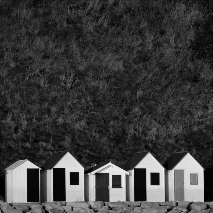 Ces cabanes semblent être sous la menace de cette imposante masse un peu indéfinissable