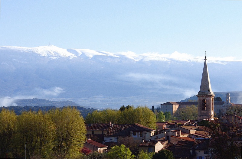 En haut à gauche c'est le Ventoux qui protège ce très joli village du mistral. Et qu'on ne me parle pas du câble en travers je ne sais pas l'ôter (si c'est possible).