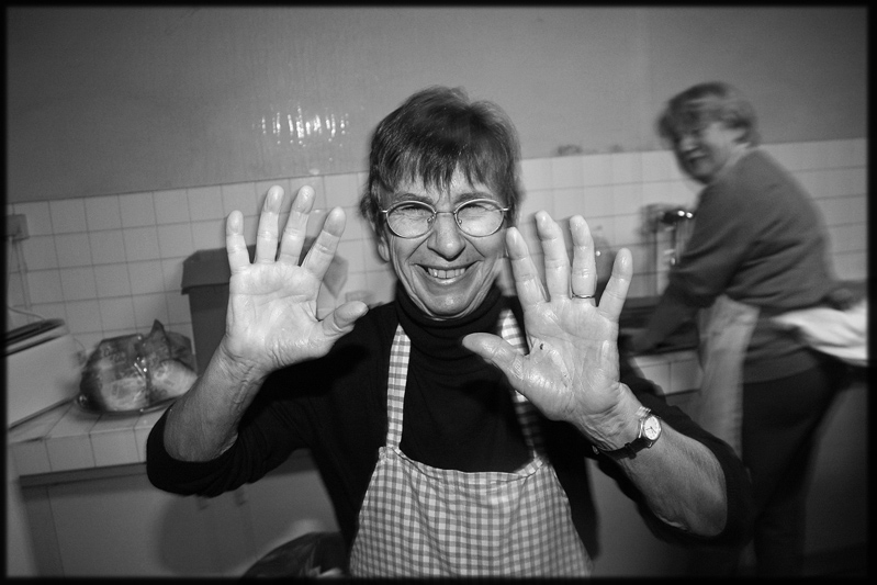 B.., bénévole Secours Catholique, dans la cuisine du Réveillon Noël 2008.