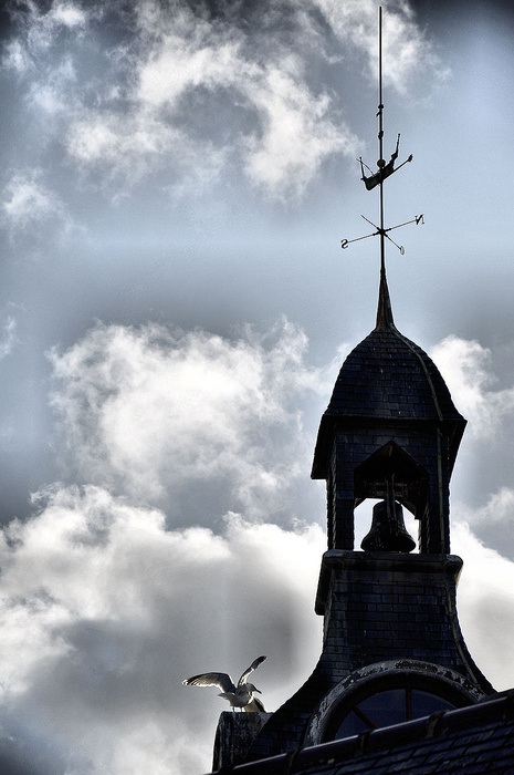 Du potentiel réel En post production, un peu d'éclaircissement sur le clocher, un peu de dramatisation du ciel, sans toucher à la mouette ! Amitiés.
