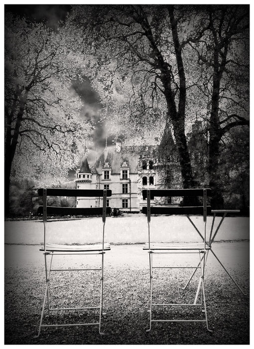 Peut etre les 2 sièges de 2 vieux châtelains, plus très riches qui aiment se poser dans le parc et regarder leur demeure ?