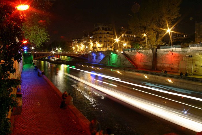 Belle pose longue, jolie couleurs, beau filé du bateau mouche, dommage qu'il ne soit plus sur la photo (même un petit bout , c'est peut-être moi qui ne le voit pas...)
