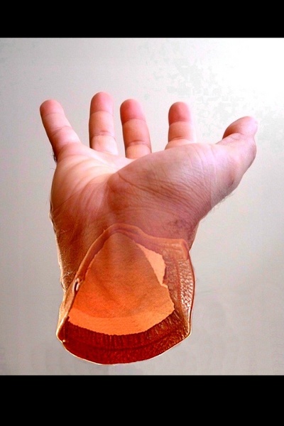 Belle fusion du gant et de la main, j'aime beaucoup, peut-être un peu surex en haut à droite.