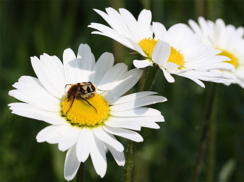 Ici j'ai l'impression qu'il y a deux sujets: les fleurs, nous offrant une belle ligne courbe à suivre en passant de l'une à l'autre, et l'insecte en train de faire mumuse.
