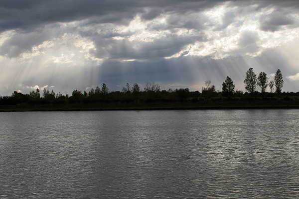 Des cieux comme on aimerait en voir souvent quand on a l'appareil en main. En assombrissant le ciel tu mettras plus en valeur les rayons du soleil qui ont l'air magnifiques. J'aurais supprimer un peu du plan d'eau qui prend trop de place et enfin redresser l'horizon qui penche vers la gauche.