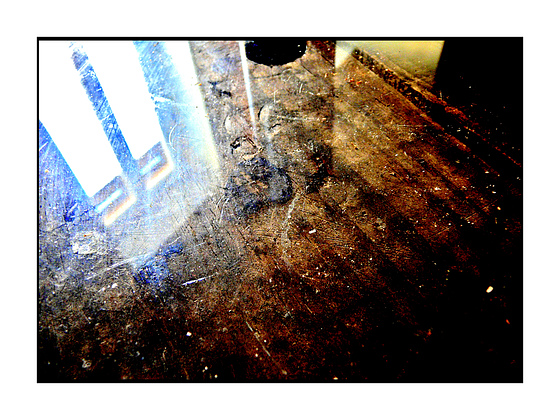 un reflet de fenêtre...la tâche noire en haut me gêne un peu, mais les tons me plaisent beaucoup...lecture difficile tout de même...
