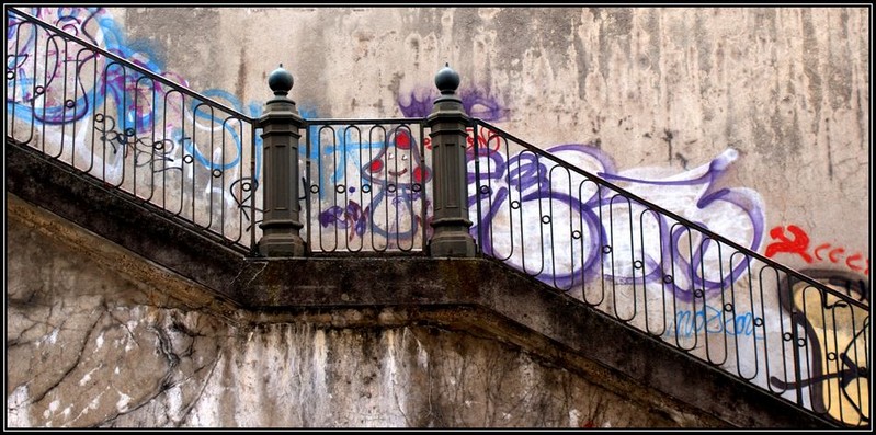 Une nette préférence pour celle-ci par rapport à "rampe 2". L'escalier, la rampe, qui suit les tags, ou plutôt les tags qui suivent la rampe, quel bon coup d'oeil. Un cadrage très soigné. Une réussite cette photo pour moi J'espère que tu vas avoir d'autres comms!