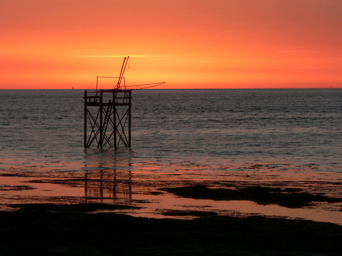 Les couleurs sont belles et l'expo bien maîtrisée. Je me serais baissé pour que la structure se découpe dans le ciel en gardant le magnifique reflet rouge du premier plan et supprimant la partie noire.
