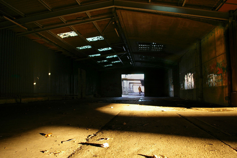 Plutôt sympa cette usine désaffectée, avec juste un personnage au fond dans la lumière.