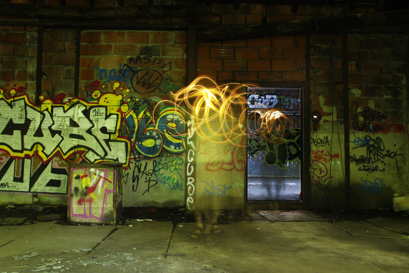 le fait de voir les traces fantomatiqueS du tagueur de feu n'apportent pas grand chose et le reflet arrière est-il de lui ou bien du preneur d'image ?