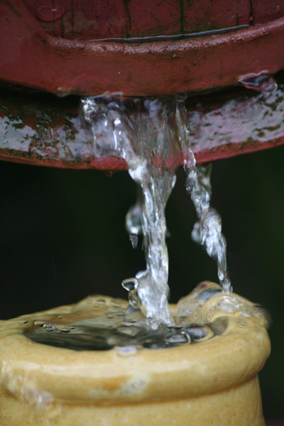 C'est effectivement une fontaine, un baril plus précisément, qui déverse l'eau dans un vase. Comme je débute en photo, j'ai voulu que l'eau soit nette, mais je n'avais pas pensé qu'il aurait été intéressant que le tout le soit! =)
