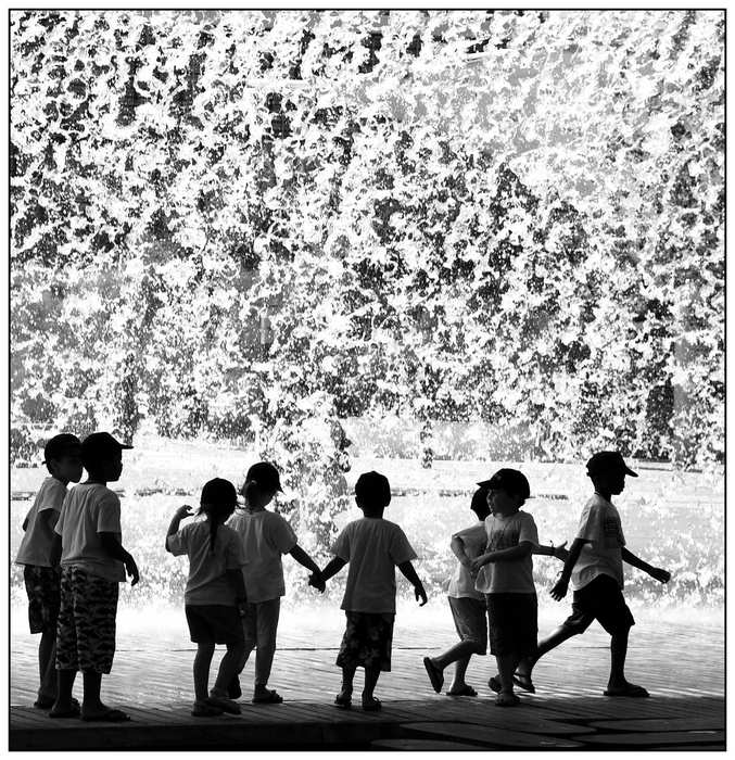 j'aime beaucoup la lumière sur la fontaine et les kids en contre