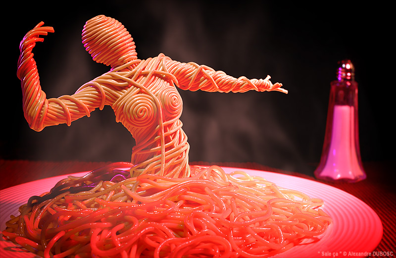 Y'a juste l'aspect des pâtes qui est légèrement différent entre l'assiette et la femme, mais rien de bien méchant.