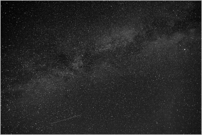 Belle qualité de n&b, il faut être loin de lumières "polluantes" pour réussir une si belle photo à mon avis Un "bonus" avec l'étoile filante, chance ou patience récompensée?? (je penche pour la 2e solution)