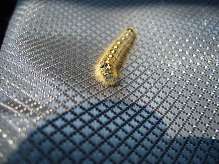 sympa ta chenille .. mais pour moi le cadrage est beaucop trop large et l'ombre en bas est perturbante car du coup on en oublie ton sujet .. dommage