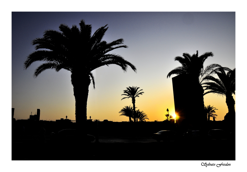 Contre jour intéressent, mais qui manque d'espace autour, et le bâtiment ? derrière le palmier fait une masse noir disgracieuse