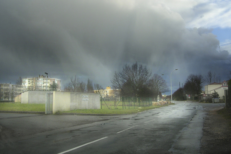 je trouve les nuages grandioses et pleines d'atmosphère lourde mas la route me dérange, elle prend trop de place